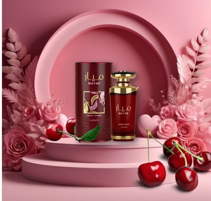Mayar Cherry Intense se lanzó en 2024. Las Notas de Salida son Fresa y Bergamota; las Notas de Corazón son Mermelada de Cereza y Cacao; las Notas de Fondo son Pachulí, Vainilla y Ámbar.