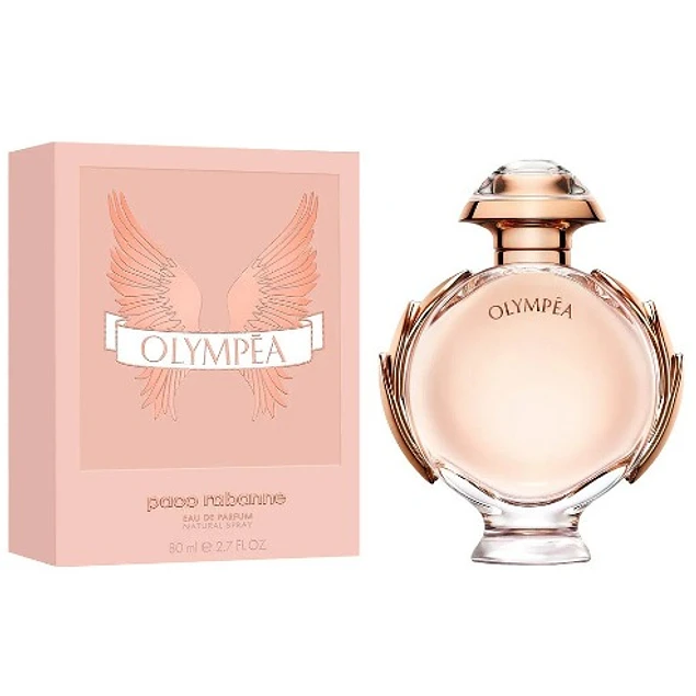 Olympea de Paco Rabanne es una fragancia de la familia olfativa Oriental Floral para Mujeres. Esta fragrancia es nueva. Las Notas de Salida son mandarina verde, jazmín de agua y flor de jengibre; las Notas de Corazón son vainilla y sal; las Notas de Fondo son ámbar gris, madera de cachemira y sándalo.